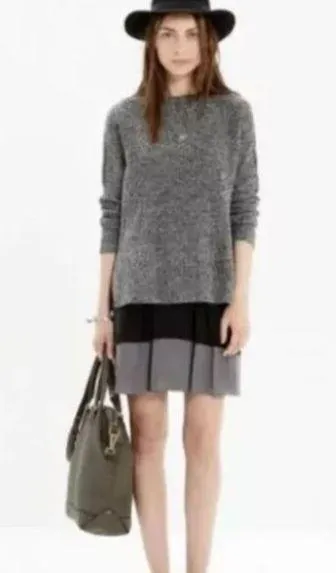 Madewell Premiere Gray Black A-Line Color Block Silk Skirt Size: Extra Small Color: Black & Gray... Show more