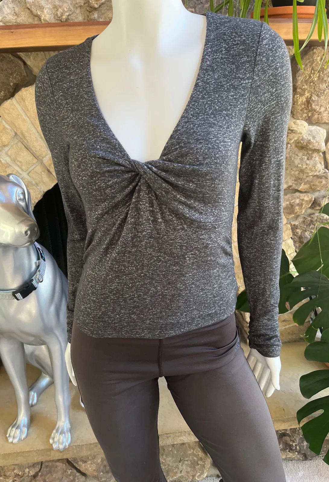 Upwest Twist Front V-Neck Gray Long Sleeve Shirt Women's Size Small - $17 - From Heather