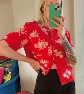 Urban Outfitters Aloha floral print Out From Under oversized button-up shirt red and white Women's... Show more