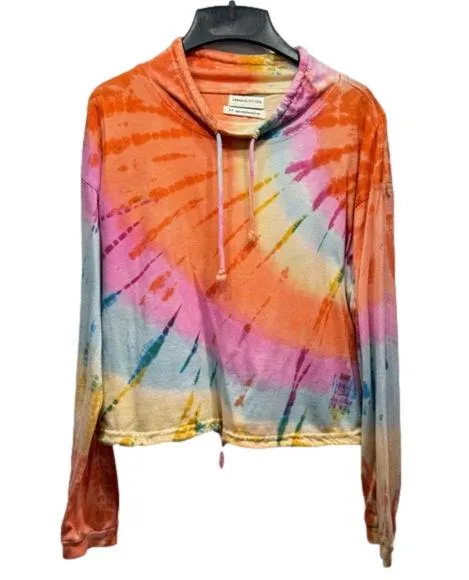 Urban Outfitters Anthropologie rainbow tie dye dropped long sleeve slouchy drawstring neck and hem s... Show more