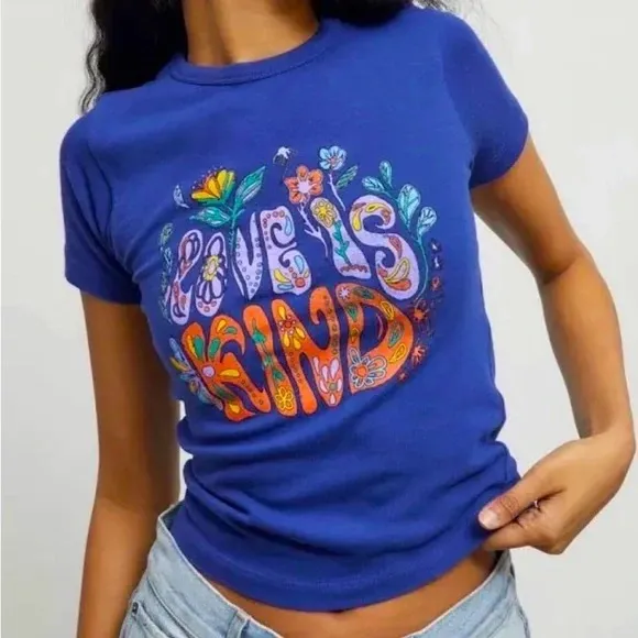 Urban Outfitters Baby tee groovy love is kind cotton royal cobalt flowers top Blue - $25 - From Filo