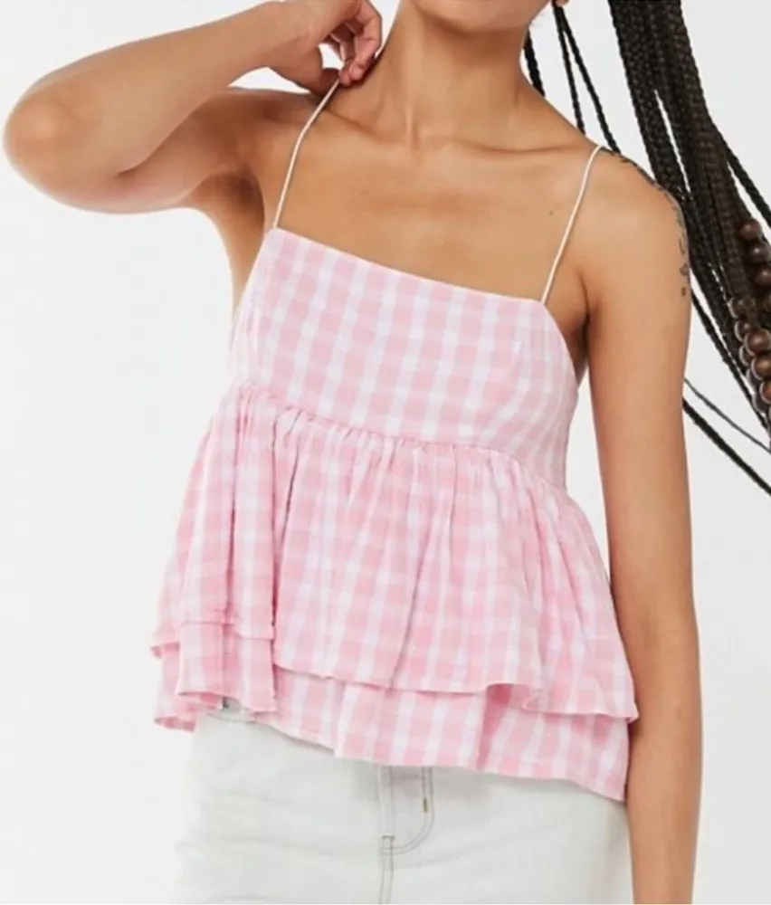 Urban Outfitters babydoll top ruffles Pink Olivia Tiered barbie gingham tank White Size L - $29 - From Filo