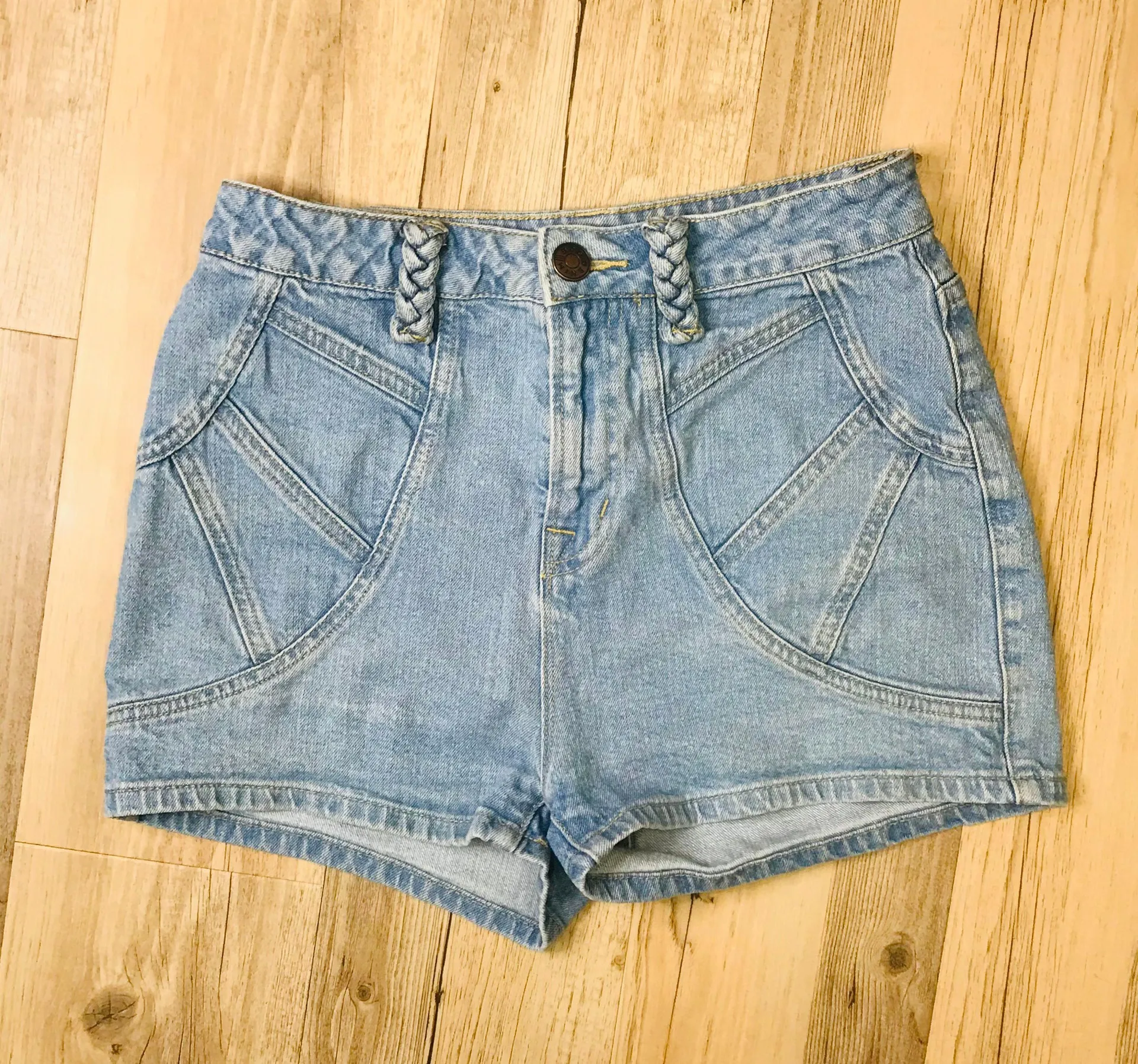 URBAN OUTFITTERS BDG high waisted denim shorts. Cute patches of denim sewn together near the pockets... Show more