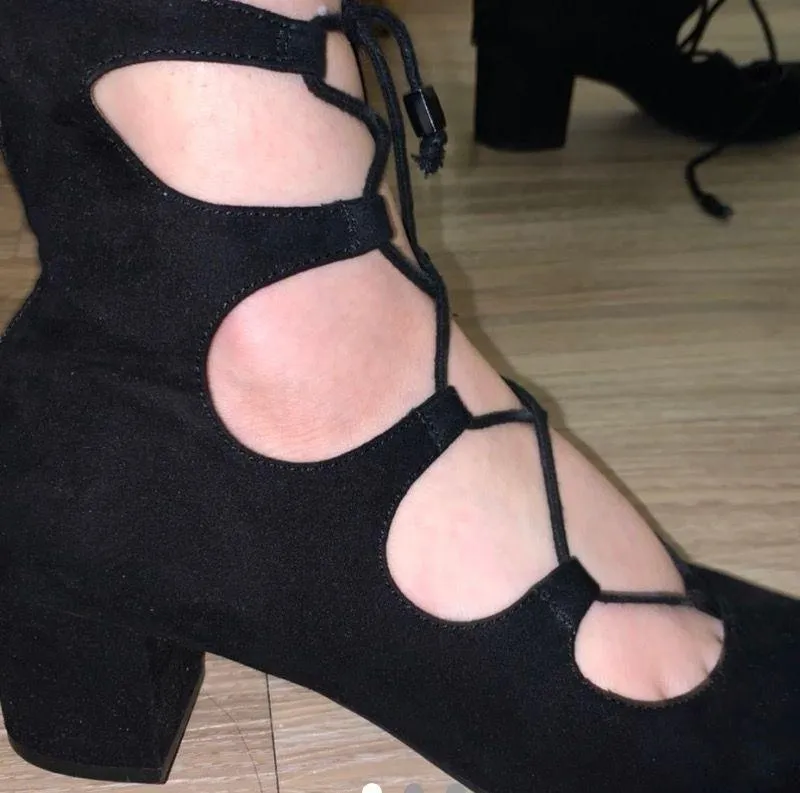 Black vintage 20s style flapper dance shoes. Super funky old fashioned low heeled shoes. In really g... Show more
