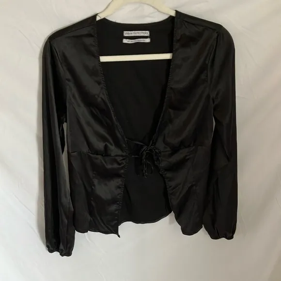 Urban Outfitters: Black Satin long sleeve Blazer with double tie front-XS - $28 - From Kelly