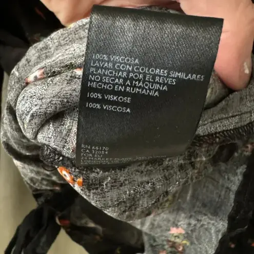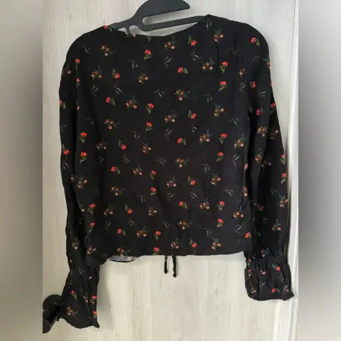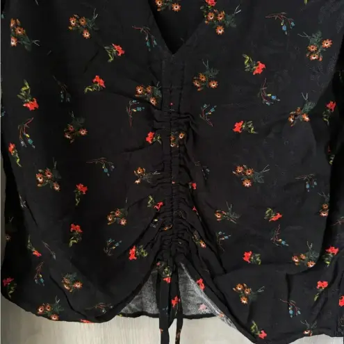 Urban Outfitters Black V Neck Cinched Floral Long Sleeve Crop Top Size Small