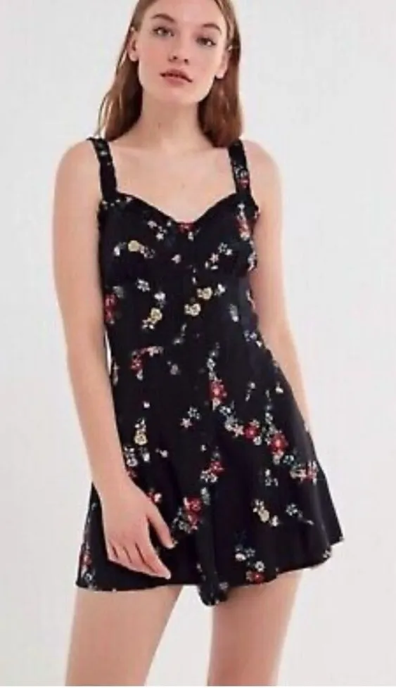 Urban Outfitters size Small Petite blue and red floral jumper with elastic straps. Made of 100% Visc... Show more