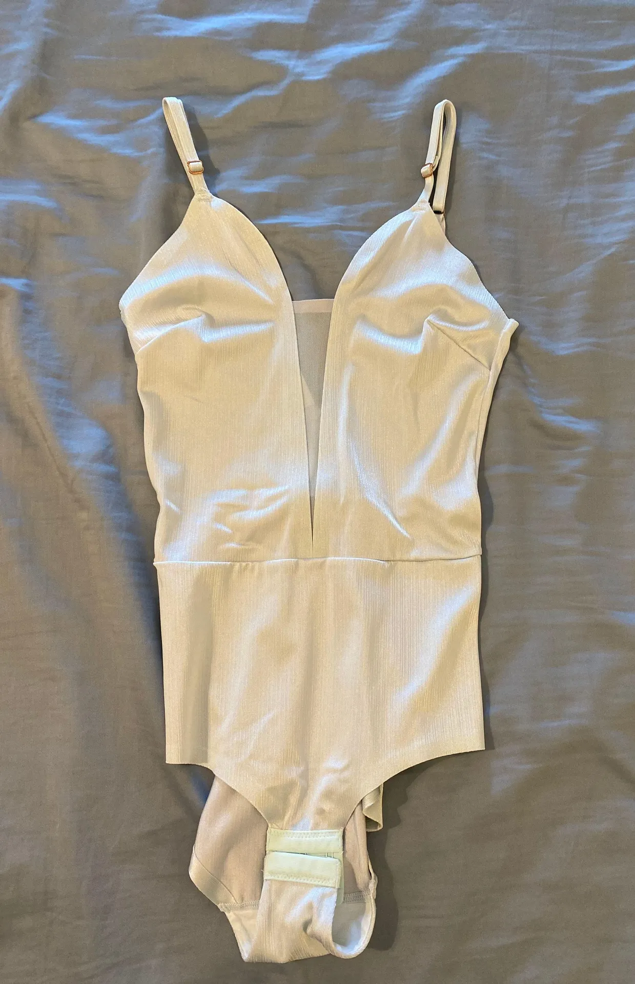 Light blue bodysuit! Has adjustable straps at the top and bottom of the bodysuit. Rly soft and comfy... Show more