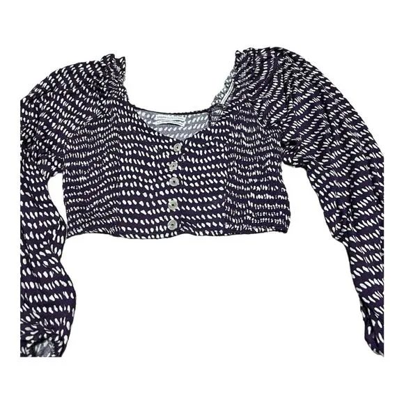 Urban Outfitters Boho lantern Sleeve Purple Crop Top Buttons Women's Size S/P Smocked Back Peasant... Show more