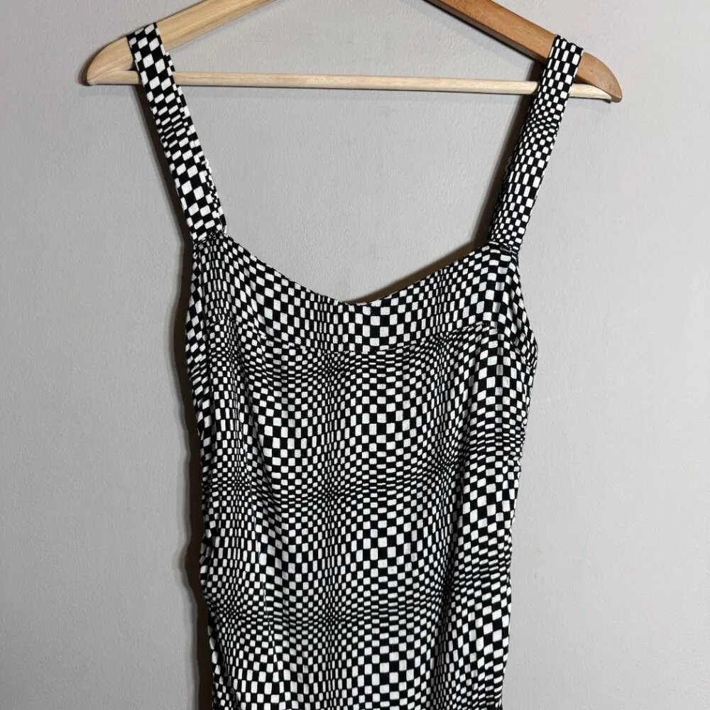 The Urban Outfitters Claira Ruched Bodycon Mini Dress in a checkered print is a stylish and versatil... Show more