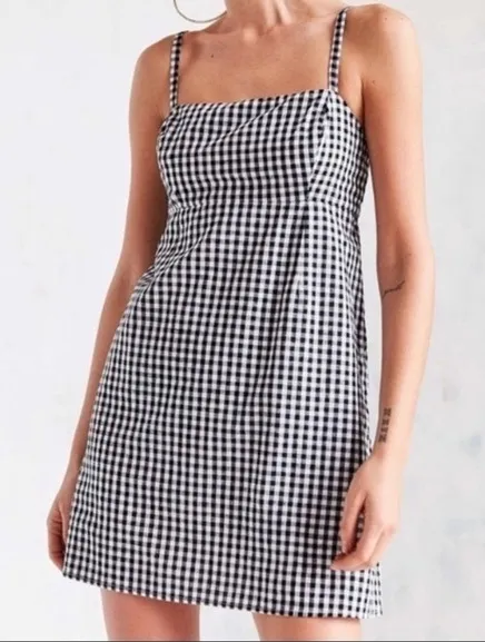 Made by Cooperative for Urbam Outfitters Gingham dress, spaghetti straps, zipper in back, 100%cotton Resting Measurements Pit to pit:17.5” Under chest side to side: 16.5” Length, Neckline to hem: 25” Condition: it looks as if one strap was sewn back on. It looks ok, but you might do a better job! See photo.