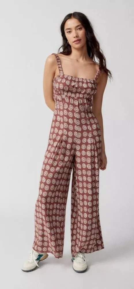 Details Style No. 0131742880014; Colour Code: Ecote linen-blend jumpsuit in a summer-ready tile p... Show more