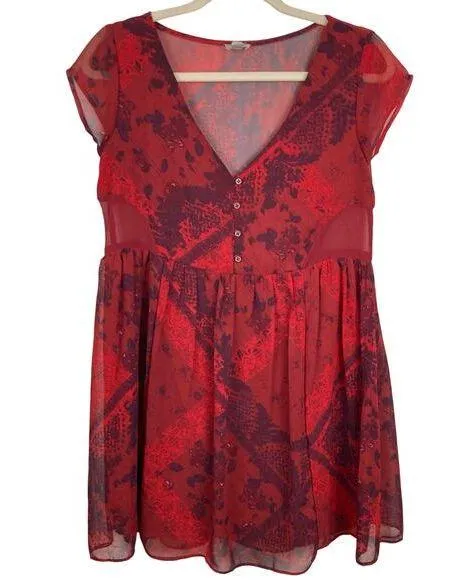 Features: -gorgeous mini dress in a deep red and burgundy floral & paisley print -lightweight chif... Show more