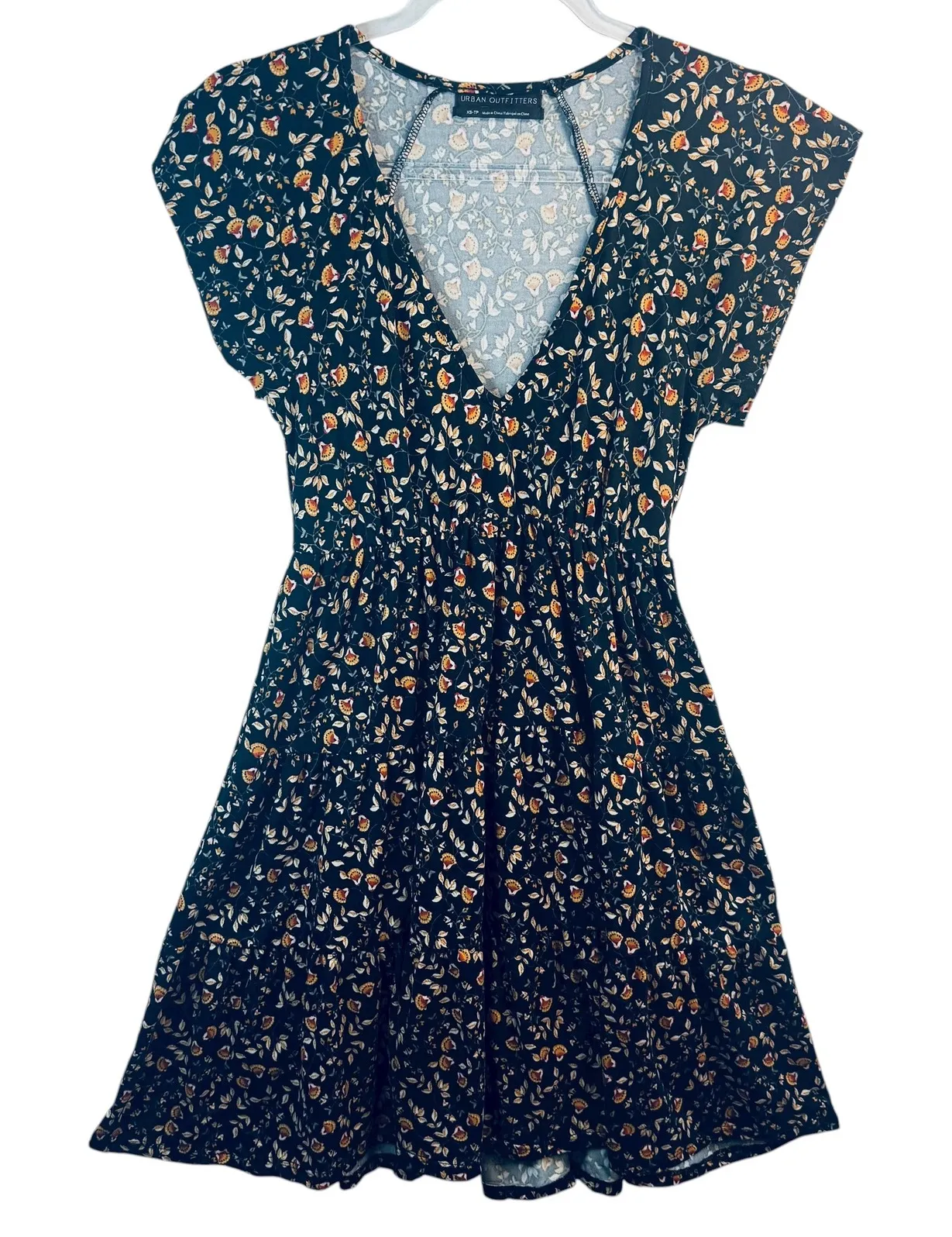 Urban Outfitters women's XS floral mini dress with black base and multicolor micro-bloom print. Feat... Show more