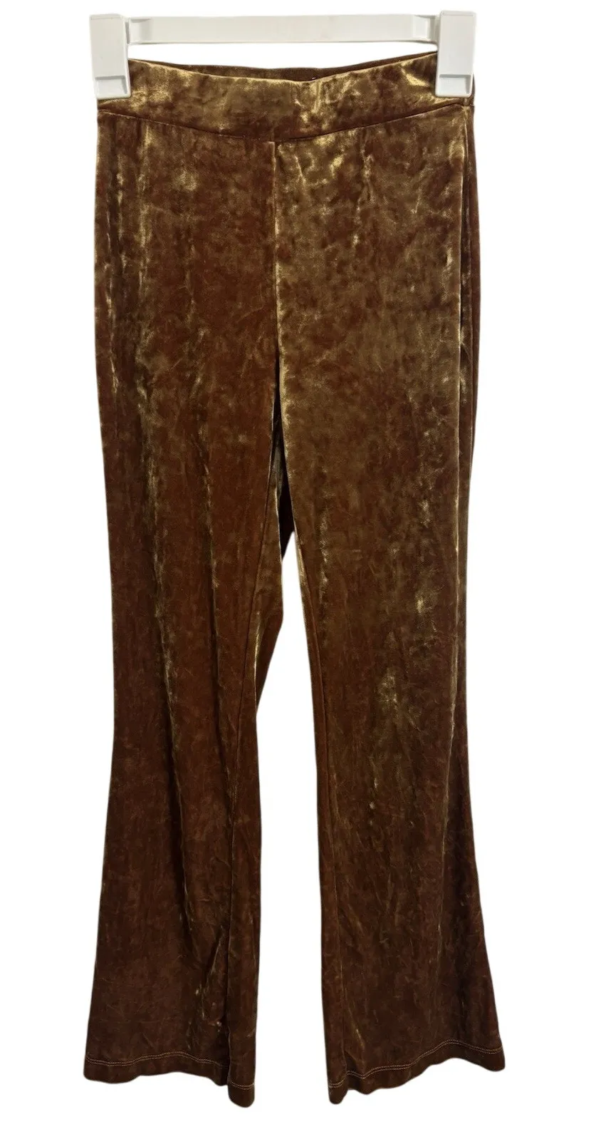 Party Urban Outfitters Women’s Size XS Gold Velvet Flar Pull On Pants Polyester Spandex Blend L... Show more