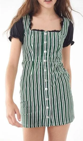 Green and white striped corduroy button down dress Size 8 - $36 - From Ashley