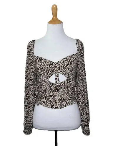 Urban Outfitters Leopard Animal Print Peplum Crop Ruffle Long Sleeve Keyhole Top. Size Medium. Keyho... Show more