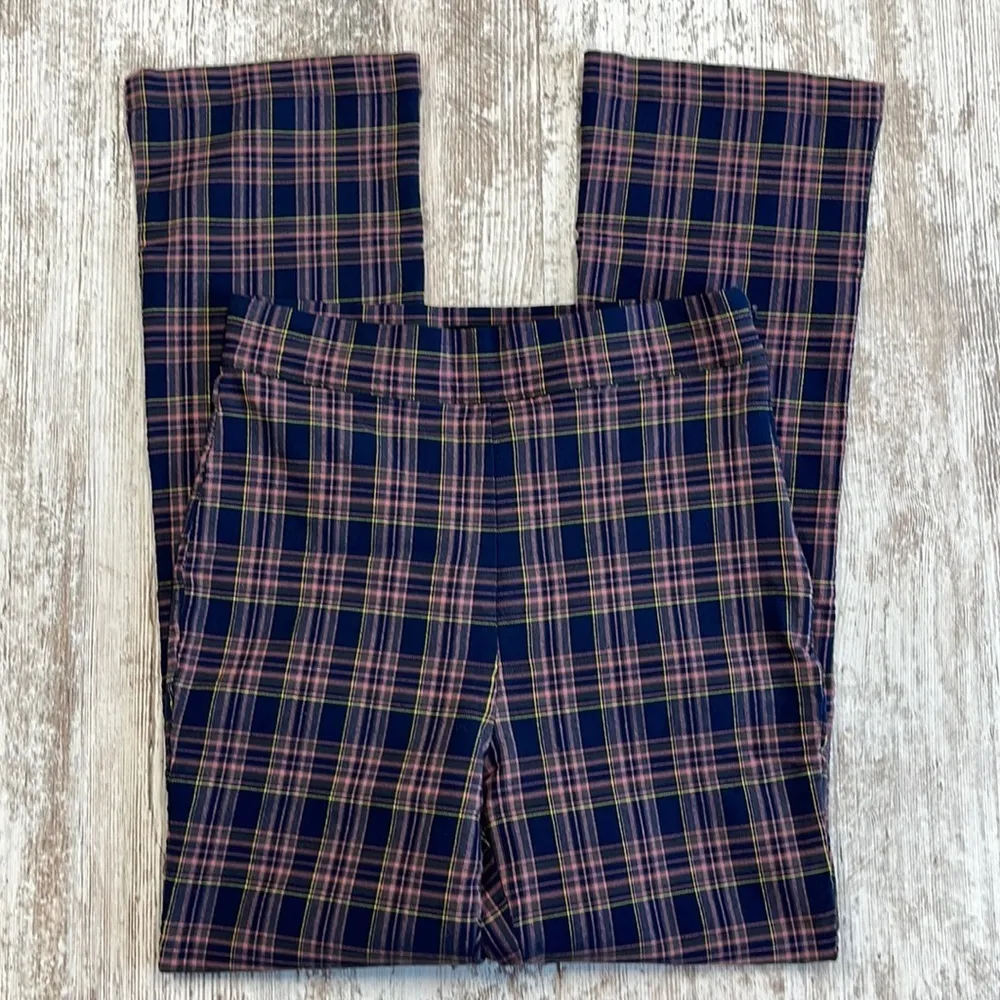 Urban Outfitters Lola Blue and Pink Plaid Kick Flare Pants with a side zipper closure Size 0 Waist... Show more