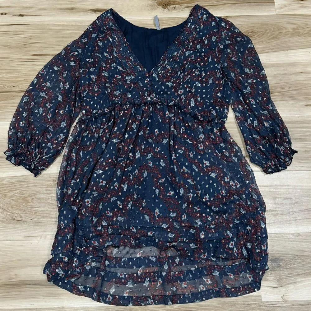 Urban Outfitters Long Sleeve Print With Metallic Chiffon Lined Dress Women’s Large Measurements- Pit... Show more