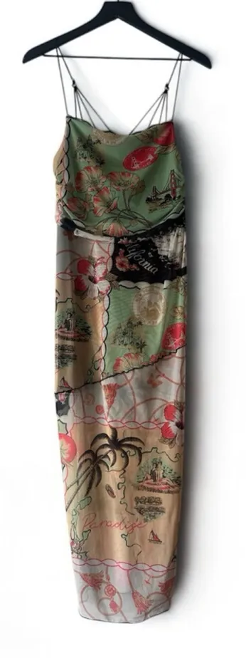 A rare and eye-catching Urban Outfitters slip dress featuring a vintage-inspired California map prin... Show more