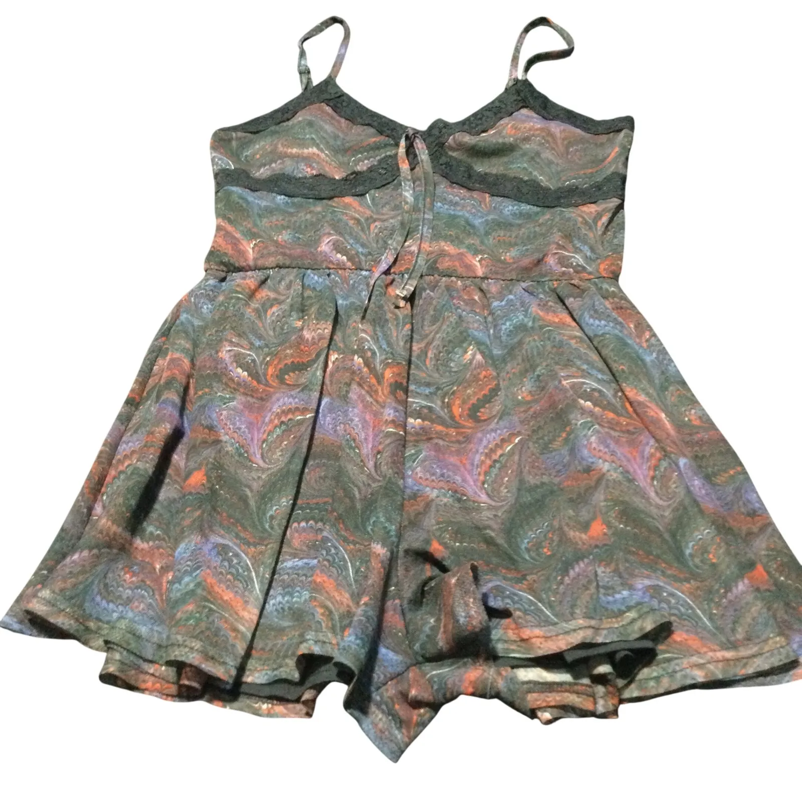 Capture attention with this captivating Urban Outfitters cami romper adorned with a mesmerizing marb... Show more