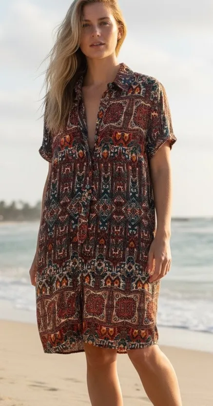 Stylish coverup with intricate patterns. Perfect for beach days. Sz.S/P 33” Length 20” Pit to pit