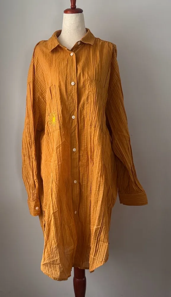Chic mustard shirt with subtle stripes. Ideal for everyday style. P27” L37” Condition excellent