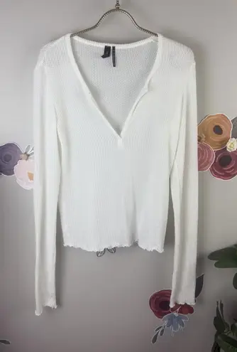 P2P 18" Length 21" Size Medium Elevate your wardrobe with this stylish white ribbed long sleeve top... Show more