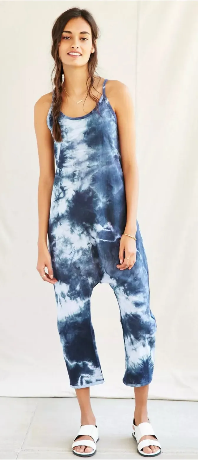 Great preowned condition Blue black white tie dye Racer back Pull on Side pockets Drop crotch... Show more