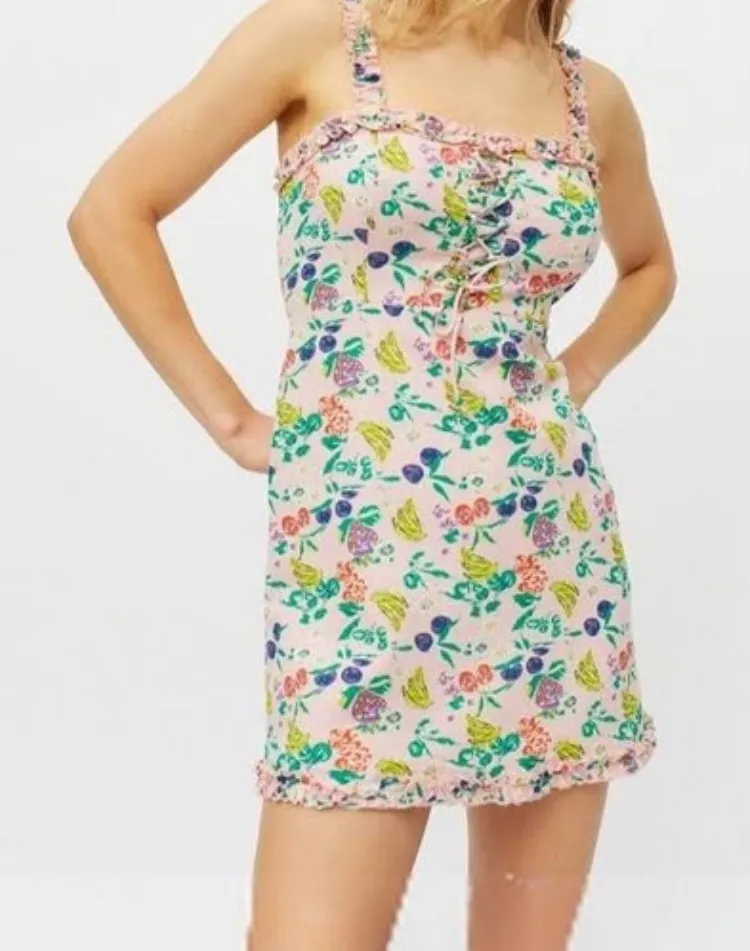 Urban Outfitters Pink Robin Lace Up Y2K Dress Fruit Cherry Print XS - $30 - From Audrey