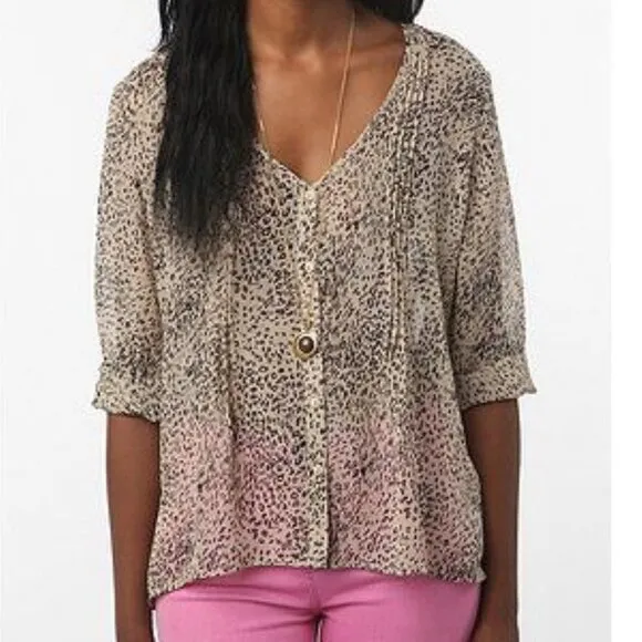 Urban Outfitters Pins and Needles Leopard Print Top Sheer tan and black leopard cheetah animal prin... Show more