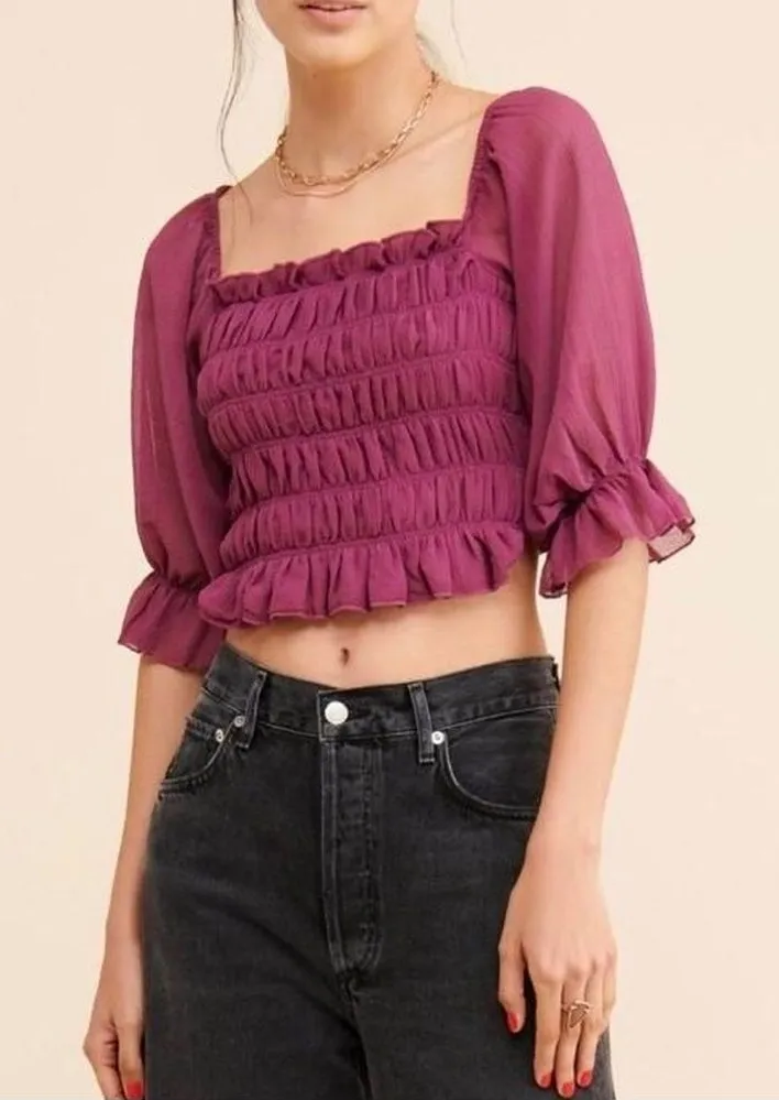 Urban Outfitters Plum Purple Puff Sleeve Blouse Top Women’s Medium Measurements- Pit to Pit: 14.5in... Show more