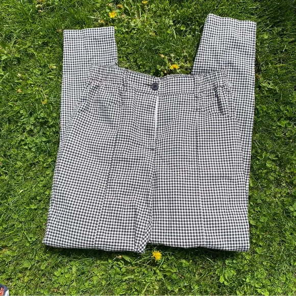 Urban Outfitters Size Small Gingham Slim St Leg Pants Elastic Waist High Rise Stretchy Black Check... Show more