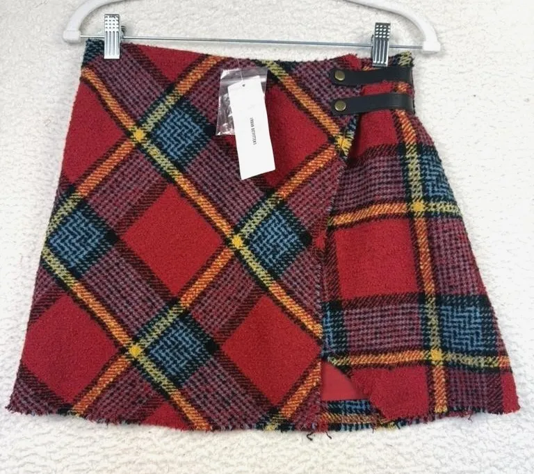 Brand: Urban Outfitters Style: Womens mini skirt in a red multicolor plaid with a wrap-style front.... Show more