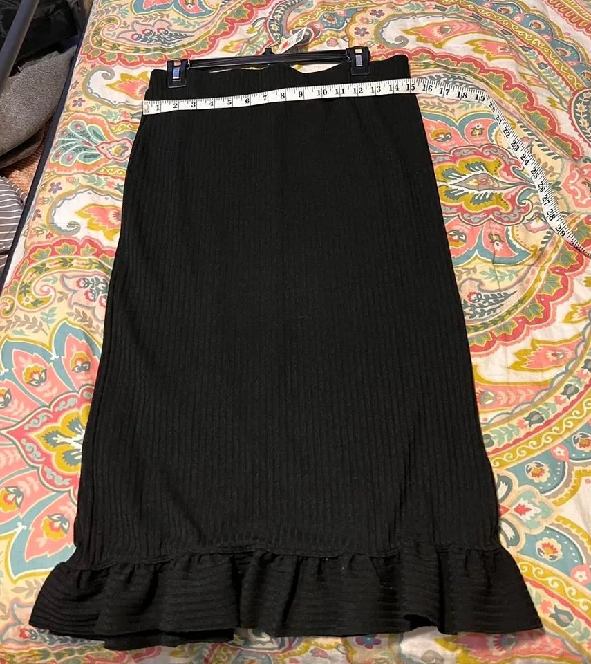 Strapless straight sweater dress can be worn as a skirt. A lot in the back with ruffle detail at the... Show more