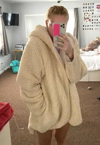 Very used, reversible, white and tan. Cute and comfy. Keeps you super warm, it was an obvious favori... Show more