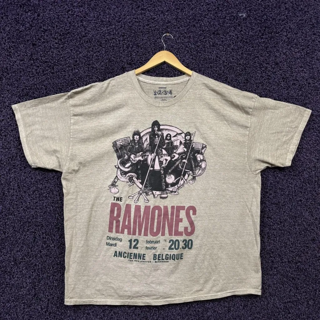 The Ramones Belgium Rock Show Poster Punk Band T-Shirt 2X generally measures 28 inches pit to pit an... Show more