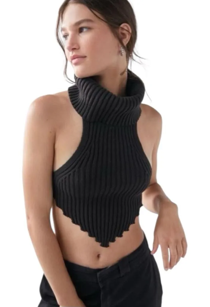 NWOT Urban Outfitters Black Ribbed Cropped Sweater Turtleneck Size Medium Please review all photos... Show more