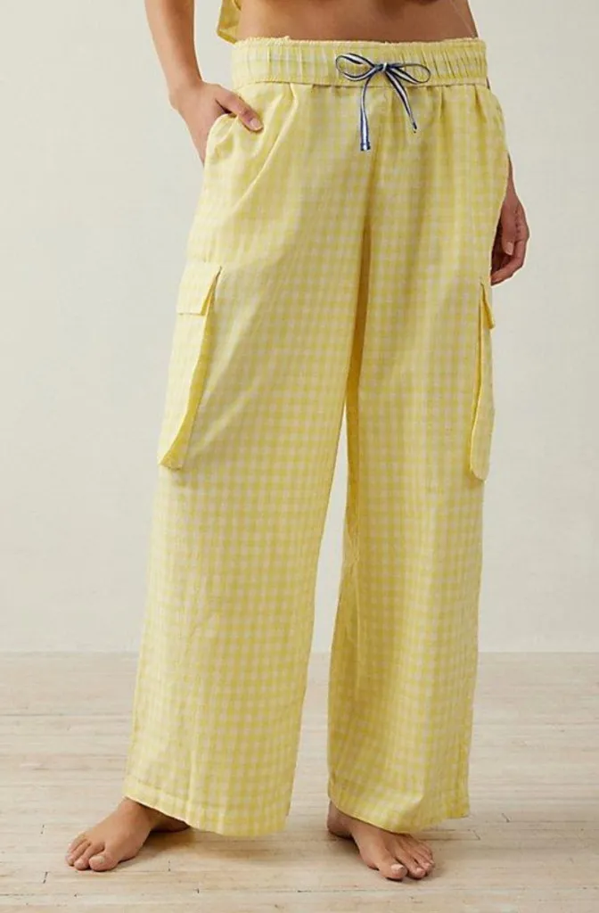 Urban Outfitters Butter Yellow Gingham Wide Leg Hoxton Pajama Lounge Pants Size M / Size Medium/ wa... Show more