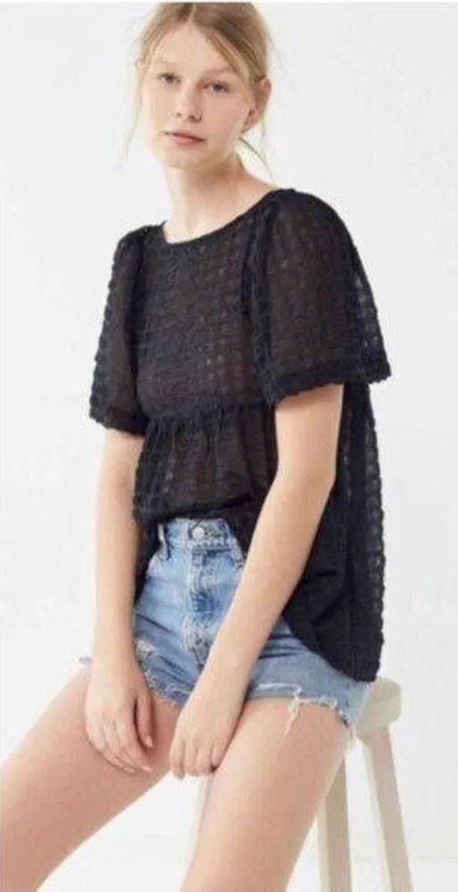Urban Outfitters Helena Crinkle Short Sleeve Babydoll Top - Large Smoke free home Reasonable offe... Show more