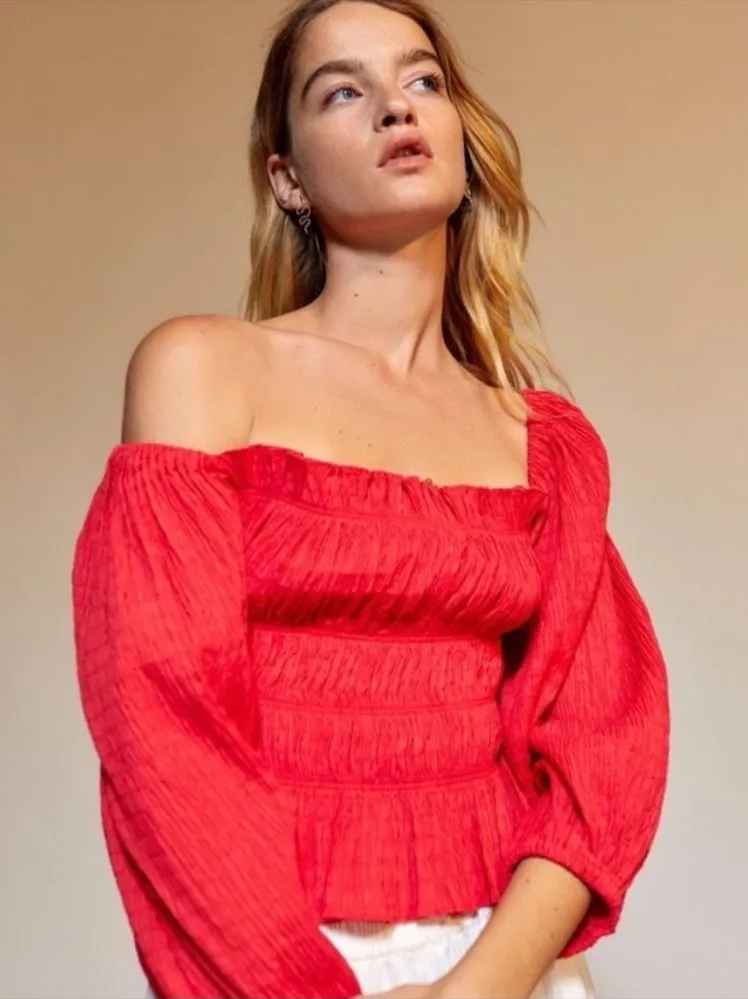 Urban Outfitters Vida Red Smocked Crisscross Tie Back Off Shoulder Top, brand new with tags. Size XS... Show more