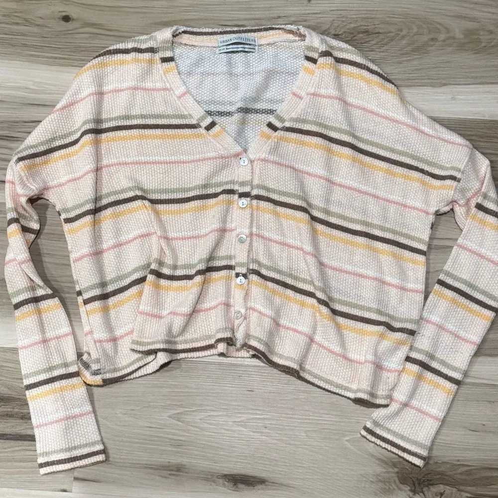 Urban Outfitters Waffle Knit Striped Oversized Cropped Cardigan Women’s XS Measurements- Pit to Pit... Show more