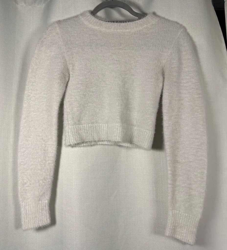 Urban Outfitters White Fuzzy Crewneck Crop Sweater. Super soft, fuzzy fabric. White. Crewneck style... Show more