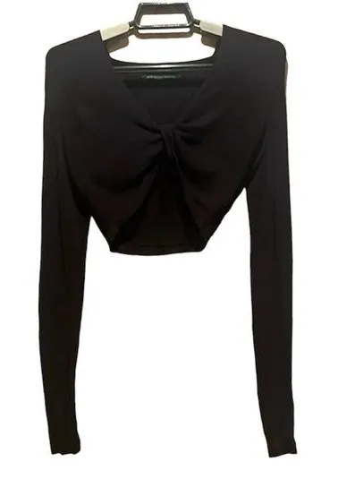 100% Rayon Lightweight Super soft Cropped Long sleeves Gathered at shoulders Great for layering 14”... Show more