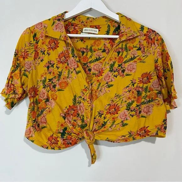 Urban Outfitters Women’s Button Down Tie Front Crop Top Floral Print Yellow Floral Print Size Mediu... Show more