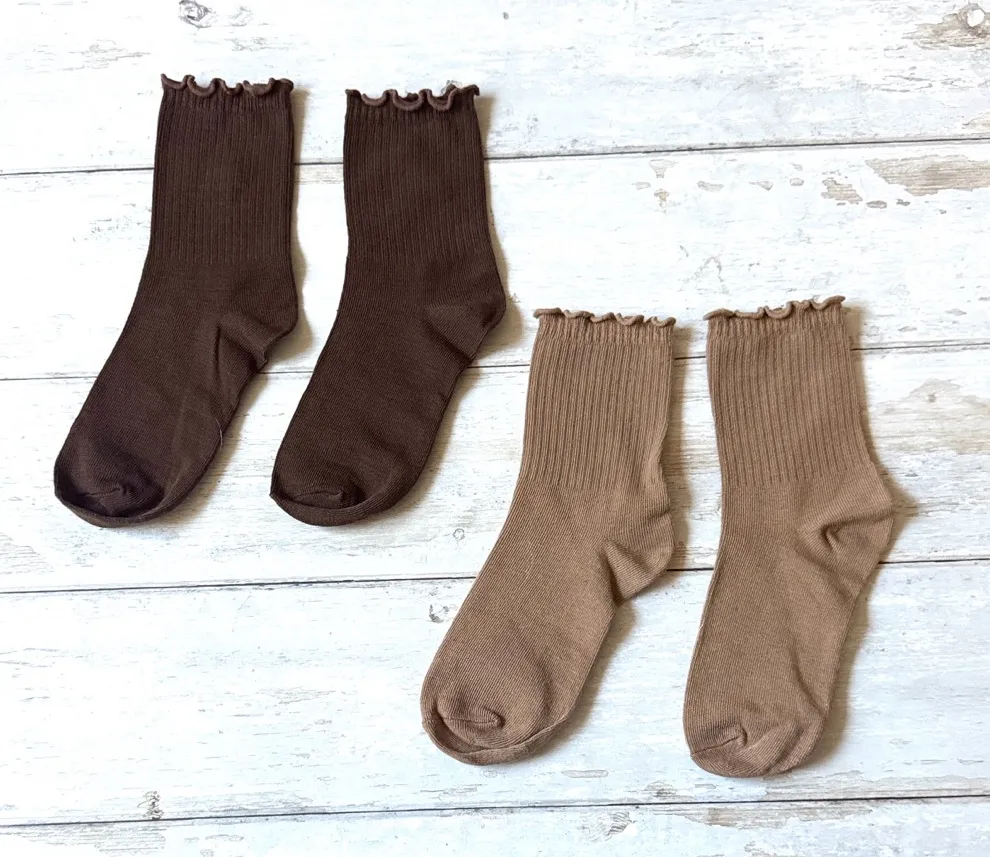 Urban Outfitters Women’s Socks Set Brown Crew Sock 2 Pack Ruffle Top Hem NEW - $12 - From Lark