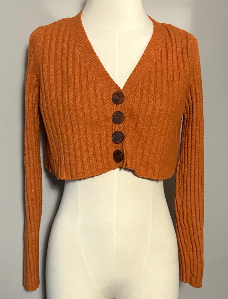 Urban Outfitters XS UO Burnt Orange Rose Ribbed Crop Cardigan Sweater Smoke free home My items a... Show more