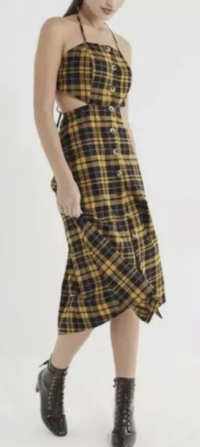Urban Outfitters Yellow Black Plaid Button Open Back & Sides Midi Dress Size XL Gold - $33 - From Audrey