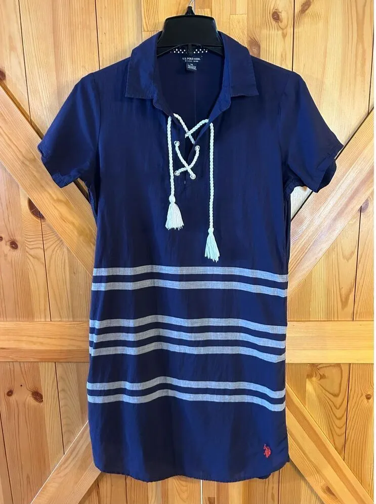 U.S. Polo Assn. LACE UP STRIPED DRESS size Medium lightweight pit to pit 19.5” length 36” (8522)