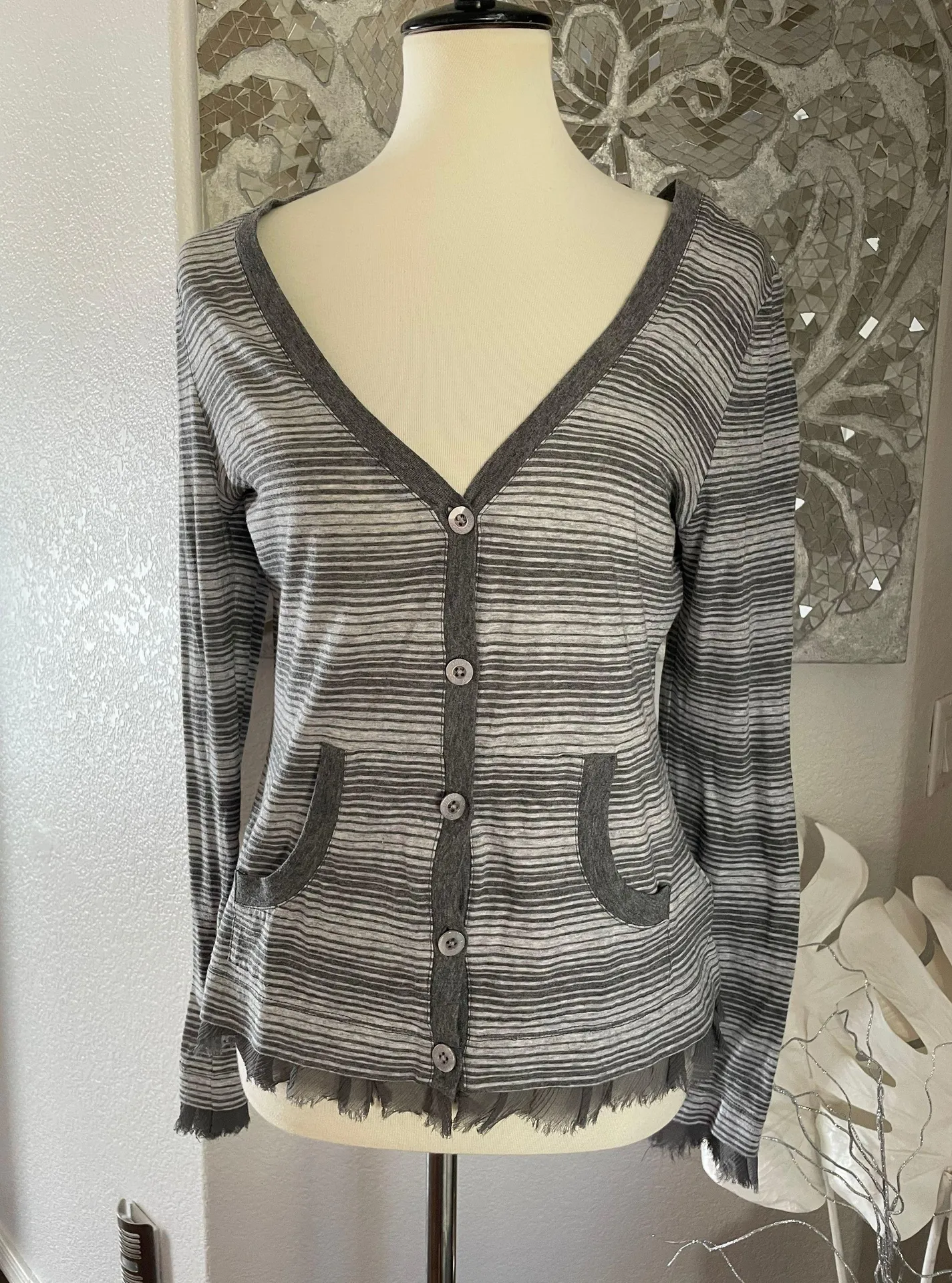 Gray Stripe V Neck Cardigan Size L - $18 (82% Off Retail) - From Jessica